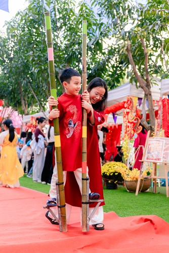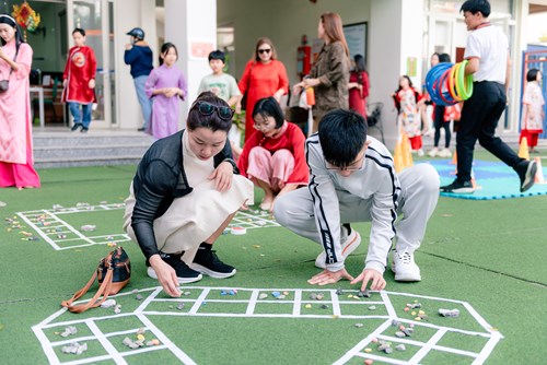 Alongside handicraft activities, a variety of traditional folk games such as ring toss, tò he modeling, bamboo pole dancing, stilt walking, and ô ăn quan brought a lively and cheerful atmosphere throughout the campus. Through these games, students not only developed physical strength and agility, but also learned cooperation, communication, sharing, and connection with peers across different grade levels.