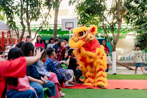 The innocent and joyful lion dance performed by SOers brought a vibrant Tet atmosphere across the Sakura – Olympia schoolyard.