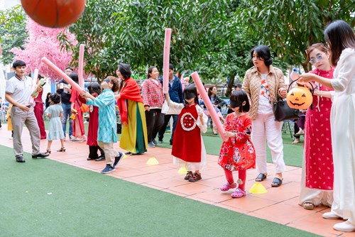 Students and parents enthusiastically participate in bonding games to collect experience vouchers