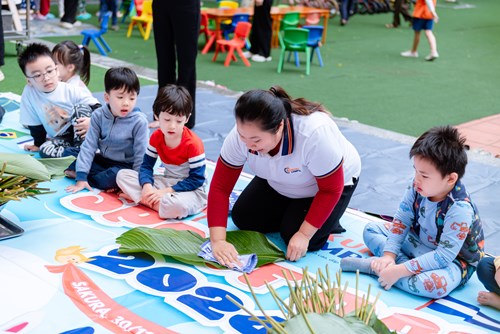 Beyond enjoying traditional food, the children became "Tết artisans," making bánh chưng and handmade crafts. Their focused efforts and laughter filled the air, bringing spring to Sakura-Olympia. The festival helped them experience the full flavor of Tết and its enduring values.
