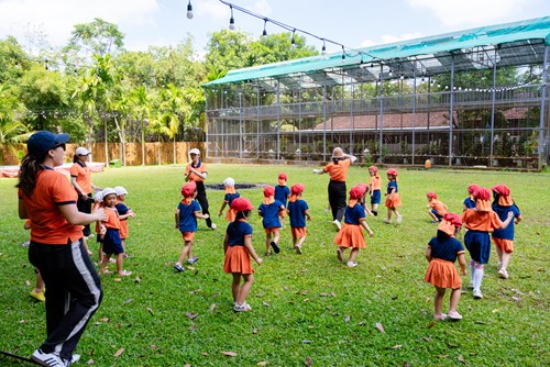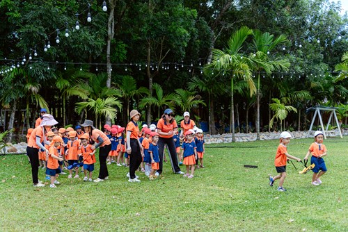 During this trip, the vast greenery of Ha Gia Forest felt like a warm and welcoming friend, opening its arms to greet the children’s tiny footsteps. From early morning, the forest came alive with laughter and cheers as the students played traditional Vietnamese games such as Dragon Snake, Cat and Mouse, Blindfolded Goat Catching, Ball Balance, and The Joyful Hoop. Each activity not only allowed the children to release their energy and build agility but also gently taught lessons in patience, teamwork, waiting their turn, and cheering for friends—essential values for character development.