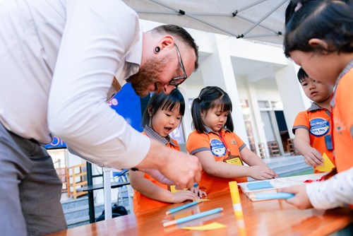 At the Language stations, students became familiar with Vietnamese and English through communication activities, challenges, and teamwork. Language was not approached as a rigid subject, but rather as a tool for students to express themselves, interact, and connect with peers and teachers.