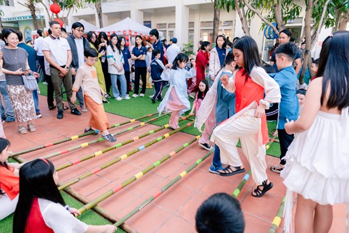 Alongside handicraft activities, a variety of traditional folk games such as ring toss, tò he modeling, bamboo pole dancing, stilt walking, and ô ăn quan brought a lively and cheerful atmosphere throughout the campus. Through these games, students not only developed physical strength and agility, but also learned cooperation, communication, sharing, and connection with peers across different grade levels.