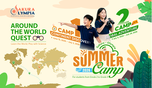 Mùa hè không chỉ là khoảng thời gian nghỉ ngơi sau một năm học dài, mà còn là cơ hội để học sinh khám phá những trải nghiệm mới mẻ và phát triển những kỹ năng quan trọng cho tương lai. Và chương trình Summer Camp 2026 – Around The World Quest của Sakura – Olympia chính là địa điểm lý tưởng để học sinh vui chơi phục hồi năng lượng sau một năm học đầy nỗ lực, đồng thời phát triển năng lực tiếng Anh và khoa học.